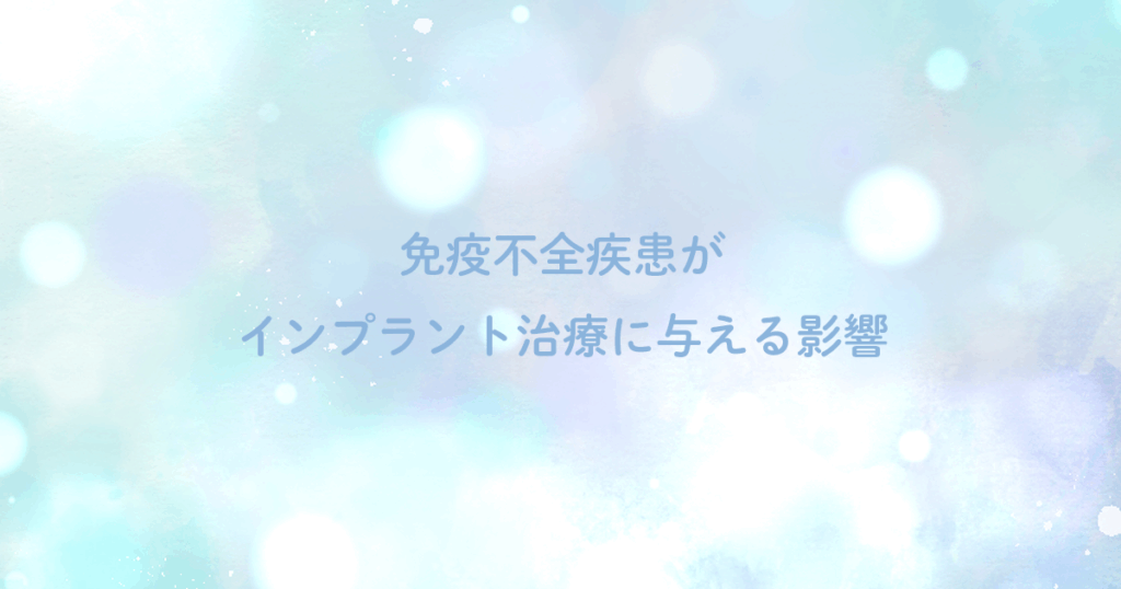 インプラント治療は、失った歯を取り戻したい方におすすめの治療ですが、すべての方が問題なく受けられるとは限りません。特に免疫不全疾患を患っている方は、インプラント治療にさまざまな影響を及ぼす可能性があります。今回は免疫不全疾患の概要と、イ... -